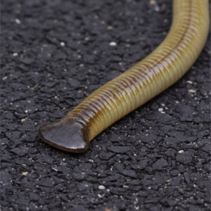 Spotted this long worm with a flat, shovel-shaped head slithering on the patio stones. It.