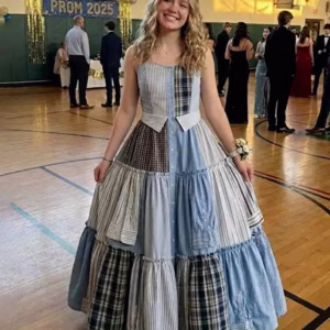 I Sewed a Dress From My Dad’s Shirts for Prom in His Honor – My Classmates Laughed Until the Principal Took the Mic and the Room Fell Silent