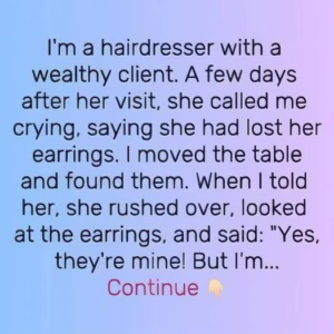 She lost her expensive earrings at my salon, when I found them, she just gave them to me.