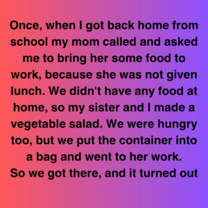 When I got home from school one afternoon, my mom called and asked if I could bring her some food to work. She hadn’t been given lunch….