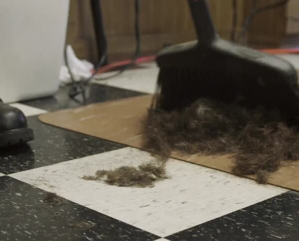 Her breath caught in her throat. She could not speak. She could only watch as clumps of his hair fell, swirling gently to the floor. The room seemed to pause, the usual sounds of the barbershop fading behind the hum of the clippers and the quiet tension that had taken hold.