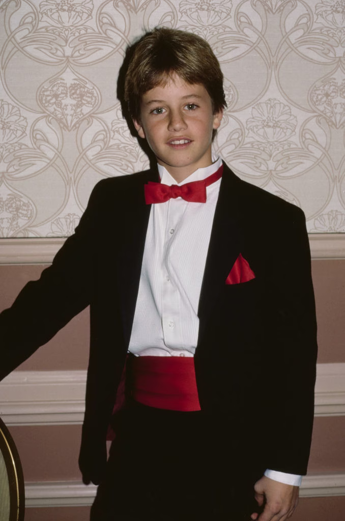 Kirk Cameron, wearing a tuxedo with a red bow tie and a red cummerbund, attends an event, circa 1982. (Photo by Vinnie Zuffante/Getty Images)